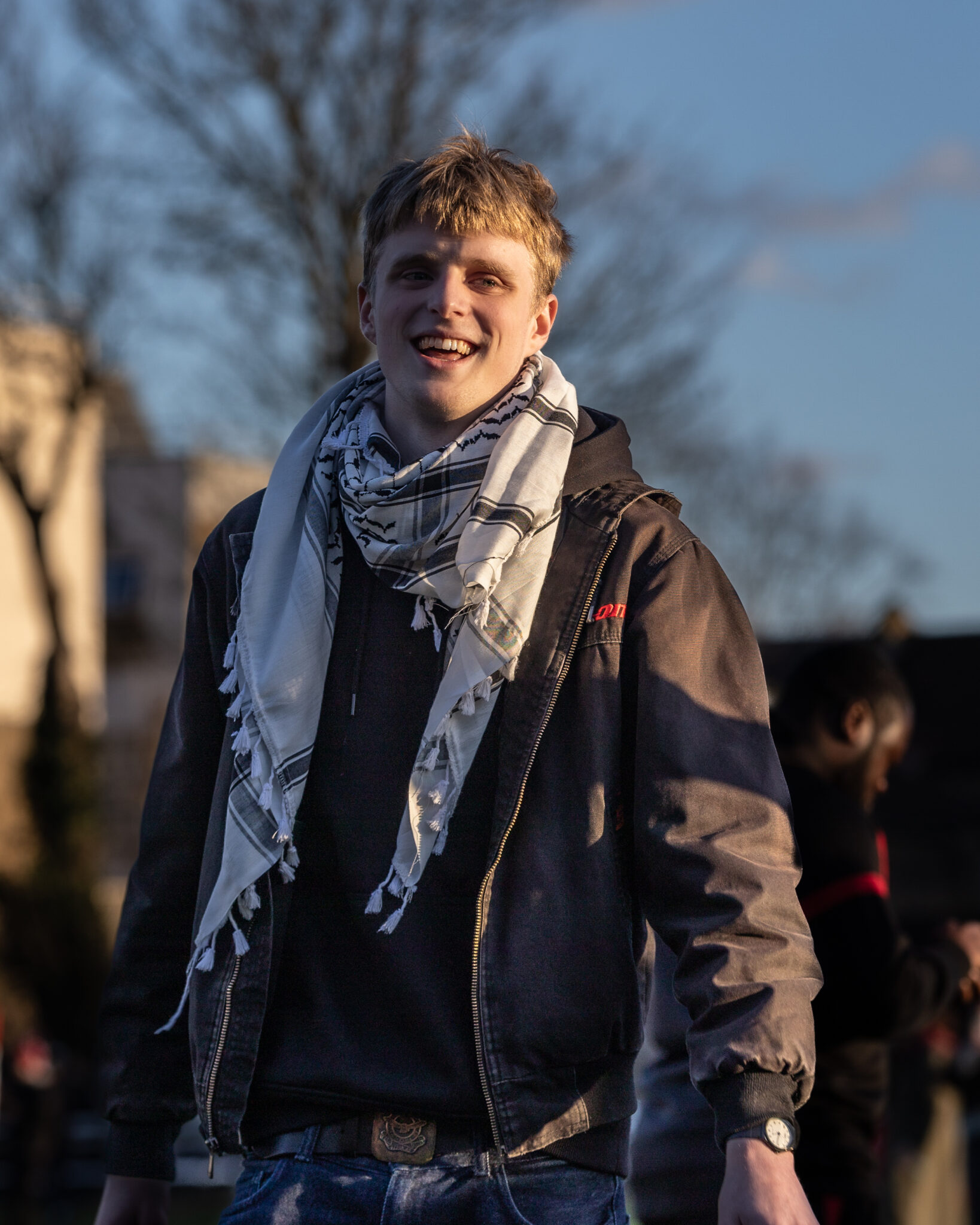 Samuel was arrested inside Elbit’s Filton site August 6th 2024. He was moved to action by the targeted violence against Palestinians for the duration of Zionist colony’s genocide and occupation. He is deeply missed by his comrades and his community, and respected for his unwavering commitment to liberation and defeating injustice. He has a degree in philosophy and linguistics, subjects which he remains passionate about, from the University of Oxford where he was also involved in student organizing. The Oxford encampment and then the wider movement for Palestine in Britain inspired him to further develop himself politically, and connected him with grassroots movements. Sam misses being outdoors, and spending time with his friends. He can’t wait to be with his partner, who he speaks to everyday and who gives him so much strength.