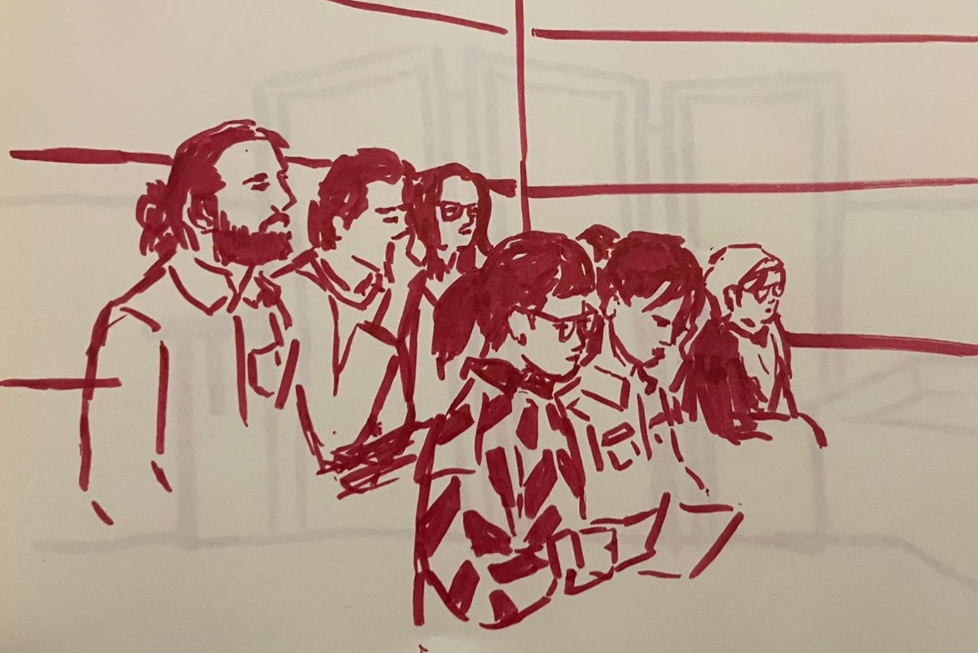 “The hypothetical bystander would see that there were three burly male security guards and six young people dressed in red, four of whom were relatively small young women”